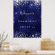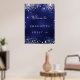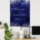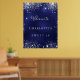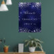 Ein Begrüßungspposter für eine mädchenhafte und glamouröse Sweet 16, 16. Geburtstagsfeier. Ein marineblau Hintergrund mit eleganten Imitaten silberne Glitzer Glitzern. Die blaue Farbe ist ungleichmäßig. Personalisieren und einen Namen hinzufügen. Weiße Buchstaben. Zurück: kein Design