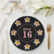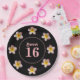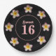 Sweet 16 & Pink Blume auf Black Paper Tellern Pappteller