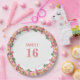 Sweet 16 Rosa Blume Garland auf weißem Birthday Paper Plate. Text kann personalisiert sein!