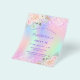 Bitte beachten Sie, dass diese Einladung auf Flyer Papier und sehr dünn ist. Umschläge sind nicht enthalten. Für dickere Einladungen (gleiche Gestaltung) besuchen Sie bitte unseren Shop. Eine mädchenhafte und feminine Sweet 16, 16. Geburtstagsfeier Einladung. vorne: Ein Regenbogen, holografischer Hintergrund in lila, rosa, minzgrün, Rose gold. Glitzer mit rosa Imitaten in Rosa, Glitzern. Personalisieren und fügen Sie einen Namen und Party-Details hinzu. Der Name wird mit einem handgeschriebenen Stilskript geschrieben, lila Buchstaben.