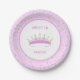 Sweet 16 Prinzessin Tiara und Sterne auf leichter goldfarbener Rose Papier Platte. Text und Zahl können personalisiert sein.