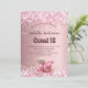 Rosa Farbverlauf mit Imitaten, Konfetti und einer romantischen Vintagen Kutsche. Personalisieren und fügen Sie ihren Namen, Party Details.