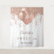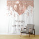 Für eine elegante Sweet 16, 16. Geburtstagsfeier. Ein stilvoller weißer Hintergrund. Dekoriert mit Rose Gold Imitate Glitzer Tropfen, Farbe Tropfen Aussehen, Glitzer Tropfen und Ballons. Personalisieren und fügen Sie einen Namen, Text/Alter und ein Datum ein. Kann als Begrüßungsbanner, Wanddekoration für das Party oder als Foto verwendet werden.