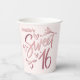 Sweet 16 rose gold paper cup. Modern Sweet Sixteen design in rose gold and blush pink with gorgeous calligraphy sign. Add your own text with easy to use Zazzle editing tool! PLEASE NOTE: The rose gold details are imitation. No actual foil used.