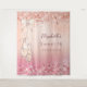 Eine Tapisserie für eine mädchenhafte und glamouröse Sweet 16, 16. Geburtstagsfeier. Eine Rose Gold und rosa Farbverlauf Hintergrund. Mit Rose Gold dekoriert, rosa Imitate Glitzer Staub und Ballerina pointe Schuhe. Personalisieren und fügen Sie einen Namen, Alter, Datum. Der Name ist in dunklem Rose Gold mit einem modernen handgeschriebenen Stil geschrieben. Kann als Begrüßungsbanner, Party-Wanddekor oder als Foto-Standbanner verwendet werden.