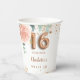 Sweet 16 Rose Goldflorale Glitzer Monogramm Pappbecher