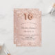 Für eine elegante Sweet 16, 16. Geburtstagsfeier. Eine Rose mit goldenem Farbverlauf. Dekoriert mit Rose Gold Imitate Glitzer Staub. Personalisieren und fügen Sie einen Namen und Party-Details hinzu. Der Name wird mit einem handgeschriebenen Stilskript geschrieben. Nummer 16 wird mit einem Schriftart im Ballonstil geschrieben.