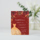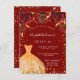 Eine moderne, stilvolle und glamouröse Einladung zu einer Sweet 16. Geburtstagsfeier. Ein roter Hintergrund mit Imitaten goldener Glitzer Staub, ein Kleid und rote Rosen, Blumensträuße. Der Name ist mit einem modernen handgeschriebenen Stilskript geschrieben. Personalisieren Sie Ihre Party-Daten und fügen Sie sie hinzu. Tipp: Wenn Sie es nicht so gewollt haben, dass es wie eine Postkarte aussieht, klicken Sie auf Anpassen, gehen Sie auf die Rückseite und entfernen Sie den Trenner und posten Sie die Briefmarke.