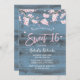 Rustikal rosa Blumenkirsche Blossom Dusty Blue Barn Wood Sweet 16 Einladungen.