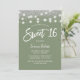 Sweet 16 Modern Sage Green Silver Glitzer String Lichter Einladungen.