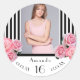 Sweet 16 Schwarz-weiße Streifen Blume Foto Runder Aufkleber