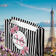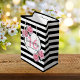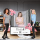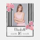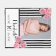 Elegantes, glamouröses und feminines Geschenk zum 16. Geburtstag eines Mädchens. Klassische und schicke schwarz-weiße Streifen. Rosa Blume, Pfannkuchen und Rose. Vorlagen für einen Namen, 16 Jahre, Geburtsdatum und das Datum des Jahrestages. Vorlage für Ihr eigenes Foto in vertikaler Größe. Mädchen und elegant!