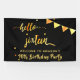 Elegantes und modernes Banner für eine 16. Geburtstagsfeier. Schwarzer Hintergrund und Imitate Goldtext geschrieben mit einem trendigen handgeschriebenen Stil: hallo sechzehn. Mit goldenen Punkten und bunten Fahnen als Dekoration. Vorlagen für den Namen und den Text: Willkommen zu ... goldenen Buchstaben. Sie können die Hintergrundfarbe so ändern, dass sie Ihrem Thema entspricht. Klicken Sie auf Anpassen und dann auf der rechten Seite auf "Hintergrundfarbe auswählen".