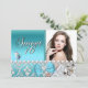 Aquamarines blaues Aqua hinzufügen Foto Sweet 16 16 . Geburtstag Geburtstagsparty Schmetterling Silberne Perle Esel Damask Bow Elegant Klasse Jeden Anlaß Einfach das Alter ändern. Party Geburtstag lädt Vorlage ein