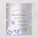 Bitte beachten Sie, dass diese Einladung auf Flyer Papier und sehr dünn ist. Umschläge sind nicht enthalten. Für dickere Einladungen (gleiche Gestaltung) besuchen Sie bitte unseren Shop. Eine moderne, stilvolle und glamouröse Einladung zu einer Sweet 16. Geburtstagsfeier. Ein Imitat silber metallisch aussehender Hintergrund mit lila Imitaten Glitzer Staub und ein Kleid. Der Name ist mit einem modernen handgeschriebenen Stilskript geschrieben. Personalisieren Sie Ihre Party-Daten und fügen Sie sie hinzu.