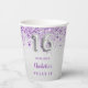 Sweet 16 silber, lila Glitzer, Staubmonogramm Pappbecher