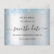 Eine gmädchenhafte und trendige Save the Date-Karte für eine Sweet 16, 16. Geburtstagsfeier. Ein Imitat silber aussehender Hintergrund mit blauen Imitaten Glitzer Staub. Personalisieren und fügen Sie Datum und Name/Alter hinzu. Der Text: Save the Date ist mit einem großen angesagten, handgeschriebenen Stilskript geschrieben.