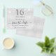 Bitte beachten Sie, dass dies Save the Date auf Flyer Papier und sehr dünn ist. Umschläge sind nicht enthalten. Für eine dickere Save the Date Karte (das gleiche Design) besuchen Sie bitte unseren Shop. Ein trendiger Save the Date für eine Sweet 16, 16. Geburtstagsfeier. Ein modernes Imitat silber aussehender Hintergrund mit Imitat Glitzer, Glitzern. Personalisieren und fügen Sie Datum und Name/Alter hinzu. Graue Buchstaben. Der Text: Save the Date ist mit einem großen angesagten, handgeschriebenen Stilskript geschrieben. Nummer 16 mit einem Schriftart im Ballonstil.