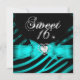Sweet 16 Sixteen Aqua Blue Zebra Einladung