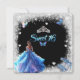Elegante 16 . Geburtstag Einladung mit silberfarbenem Glitzer-Rahmen, hübschen Schmetterlingen, Kronen, weißen Herzen und Mädchen mit einem herrlichen glitzernden Blau- und Rosaton. Ihre Schuhe sind rosa und blau funkelnde High Heels. Schöne silberne Prinzessin Krone und 16 . Geburtstag in einem eleganten Schriftart.