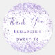 Sweet 16 weiße violette Glitzer Name Vielen Dank Runder Aufkleber
