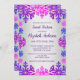 Winter snowflake sweet 16 birthday featuring textured snowflakes in shades of purple, pink and blue on a silver gradient background
