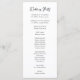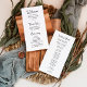 Diese schlichten und stilvollen, schwarz-weißen Hochzeitsempfangsprogramme sind mit kluger, Vintager Schrift-Typografie ausgestattet. Ein elegantes, klassisches minimalistisches Design, das noch einzigartig und zeitgemäß ist. Fügen Sie einfach Ihre Reihenfolge der Zeremonie, eine besondere Botschaft des Dankes an Ihre Gäste, und die Namen Ihrer Hochzeitsfeier.