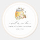 Süß wie möglich Biene, Babyduschaufkleber. Niedliche Honigbienen, Honiggläser und Blumenarrangements im Sommergarten mit pastellfarbenen Pfirsichfarben.