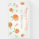 Dieses bezaubernde Banner zeigt handgemalte Pfirsiche, Blume und Grünpflanzen.