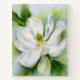 Dieses personalisierte Notizbuch ist mit Blumenbildern in sanften Pastelltönen geschmückt, die eine weiße Magnolienblüte darstellen, sowie Monogramm und Namenstext.