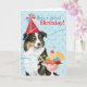 Herzlichen Glückwunsch zum Geburtstag mit diesem niedlichen Design mit einem lächelnden, Party tragend australischen Schäferhund mit einem Eisbecher. Text kann leicht geändert werden; klicken Sie einfach auf Anpassen.