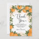 Citrus themed Dankeschön Karte mit wunderschönen handbemalten Orangen und Grün mit whimsical Schrift Schrift schmückt.