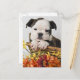 Kleiner Bulldog Welpe in einem Korb mit Blume im Herbst. Auf weißem Hintergrund. © und ® Bigstock® - Alle Rechte vorbehalten.