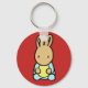 Grundlegender Schlüsselanhänger mit Vorderbild eines süßen Babybsonns. Dieser bezaubernde Hase trägt einen blau-fußgefußten Schlafanzug mit einem hellgelben Fahrrad. Andere Stile, Größen und Farben verfügbar.
