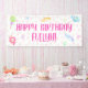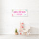Dekorieren Sie Ihre Süßigkeiten-Themenparty mit diesem niedlichen und farbenfrohen Party-Banner mit einem Polka-Dot-Hintergrund und bunten Süßigkeiten. Personalisieren Sie es mit Ihrem eigenen Text!