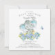 Adorable heitere Elefanten mit hübsch blauen Blumen für eine Babydusche. Dreh unsere Einladung zu einem koordinierenden Rücken für eine besondere Touch.