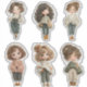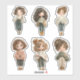 This charming sticker sheet features 6 unique chibi-style girl stickers illustrated in a soft, playful digital clipart style.