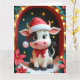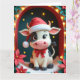 Sweet Cow mit Weihnachtsmannmütze in Snowy Stable Karte
