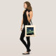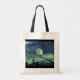 Sillouette Kunst eines einsamen Vogels, der auf einem grünen Zweig sitzt, mit dem süßen Mond darüber, und sonderbare Grabsteine im Friedhof.