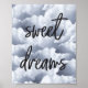 Sweet Dreams Wall Art Poster mit Cloud-Hintergrund perfekt für Kinderzimmer.