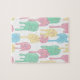 Indulge in a world of sugary delight with the Sweet Drip puzzle. This whimsical design features a seamless repeating pattern of melting ice cream scoops in a soft pastel palette of mint green, pale yellow, bubblegum pink, and sky blue. Each scoop is topped with colorful rainbow sprinkles and characterized by long, artistic drips that create a dynamic and fun visual rhythm. This lighthearted artwork is perfect for dessert lovers and puzzle enthusiasts looking for a bright, cheerful, and moderately challenging activity that celebrates everyone's favorite summer treat.
