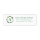 Moderne personalisierte Rücksendeadressen-Aufkleber mit grünem botanischen Kranz um Ihren individuellen Monogramm-Initial. Personalisieren Sie es mit Ihrem Namen und Ihrer Rücksendeadresse. Klicken Sie auf Anpassen, um ein Foto hinzuzufügen, den Text, die Schriftart und die Farben zu personalisieren, um ein einzigartiges Design zu erstellen.