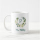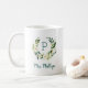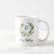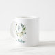 Individuell mit Monogramm Kaffee-Tasse personalisiert mit Ihrem Initial und Namen oder anderen Text. Dieses inspirierte Bauernhaus besticht durch einen farbenfrohen Kranz aus Grün und weißen Blume auf weißem Hintergrund. Fügen Sie Ihren Monogrammbuchstaben in den botanischen Rahmen und den Namen in einen modernen Script-Schriftart ein. Verwenden Sie die Designtools, um eine beliebige Hintergrundfarbe auszuwählen, Textfarben und Schriftart zu ändern oder eigene Fotos hinzuzufügen, um eine Tasse zu erstellen. Ein perfektes Geschenk für Lehrer oder eine frisch verheiratete Braut.
