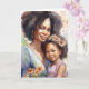 Schöne Abbildung einer afroamerikanischen Mutter, die ihre Tochter mit Blume in einem hübschen Aquarellbild in ihren Haaren hält. Glückliche Muttertagskarte mit einer personalisierten Botschaft im Inneren.