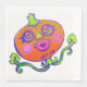 Ein süßer Kürbis mit Liebe Herzen in ihren Augen, handgezeichnete Kunst mit einem Vintagen Landstil. Orangefarbener Kürbis mit fröhlich lächelnden rosafarbenen Lippen und rosa, runden Wangen, grünen Augen und lockig grünen Weinreben.