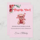 Sweet Heart Teddy Bear Pink Baby Shower Dankeskarte