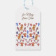 Weihnachtsgeschenk-Tag für Kinder mit Lebkuchen Mann, Weihnachtslollipops und Feriendekoration.