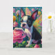 Ein süßer kleiner Hund Boston Terrier Welpenfee in den Rose leer in jeden Anlaß Karte KI generiert Kunst