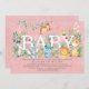 Wasserfarben Safari Tiere Baby Dusche Einladung für ein kleines Mädchen Set auf einem rosafarbenen Boden mit einem koordinierenden Rücken für eine besondere Touch.