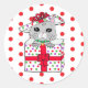 Sweet handgezeichneter Cartoon Kitten in Weihnachten Geschenkboxen mit Polka Dots Classic Round Sticker . Diese sind so bezaubernd, um sich an Weihnachtskarten oder Bonbons zu halten.
